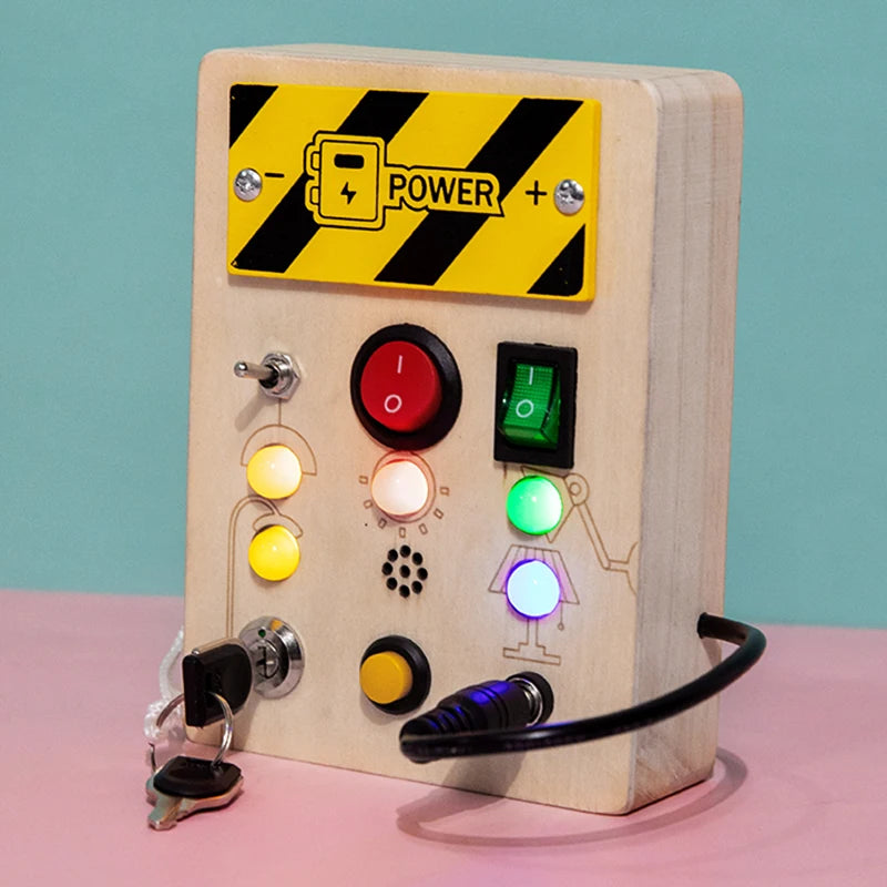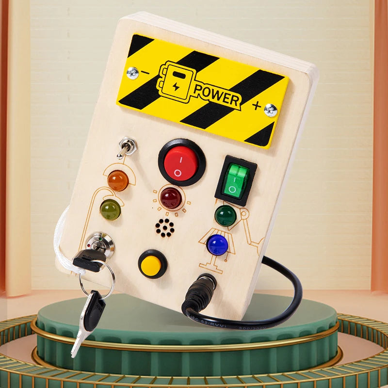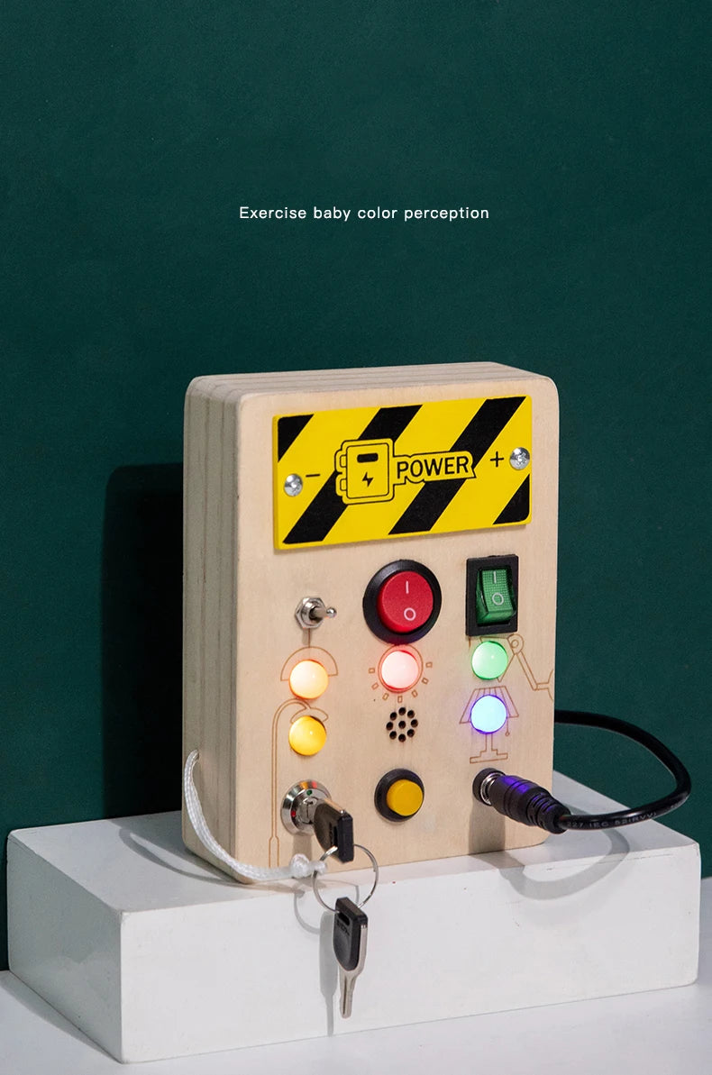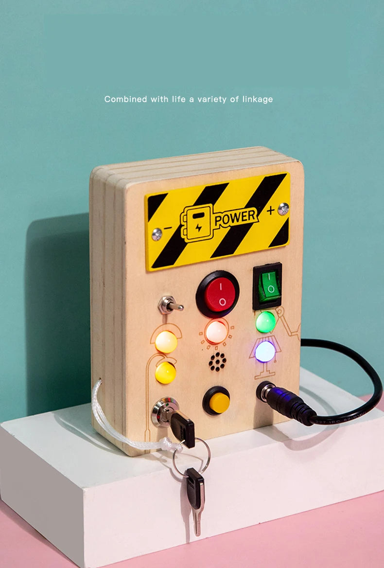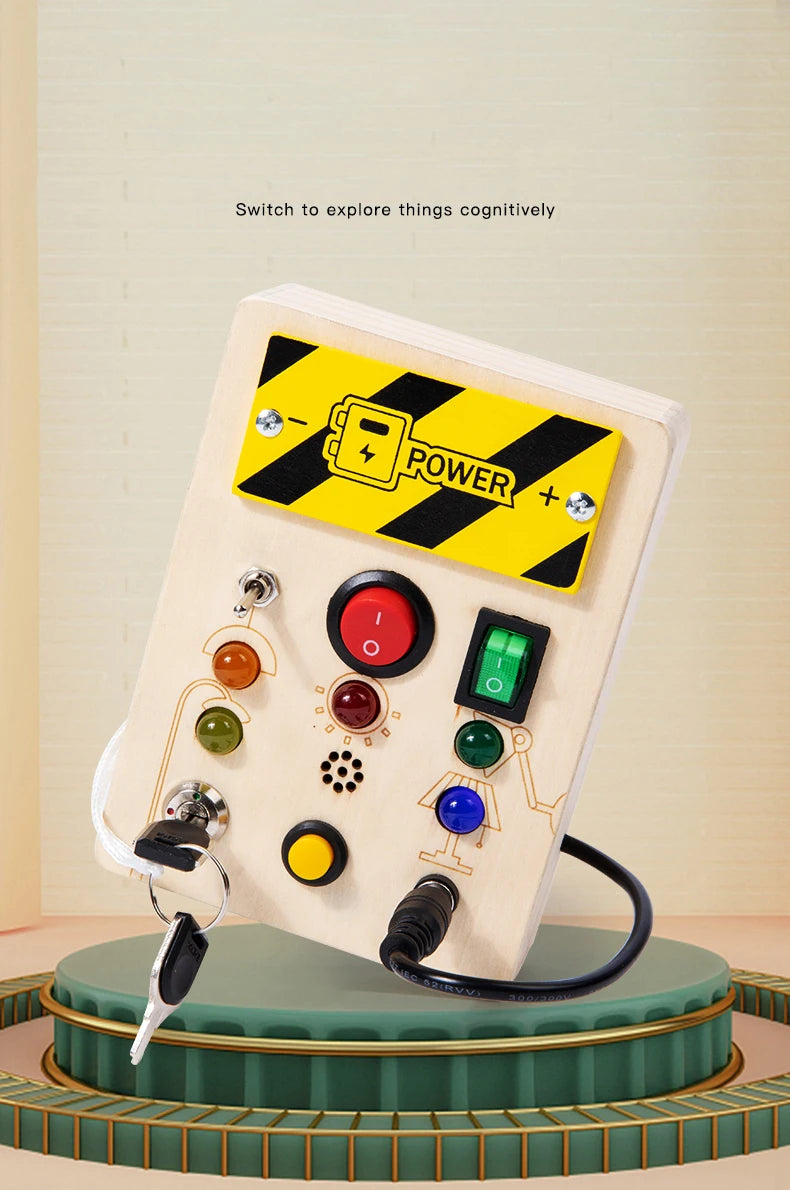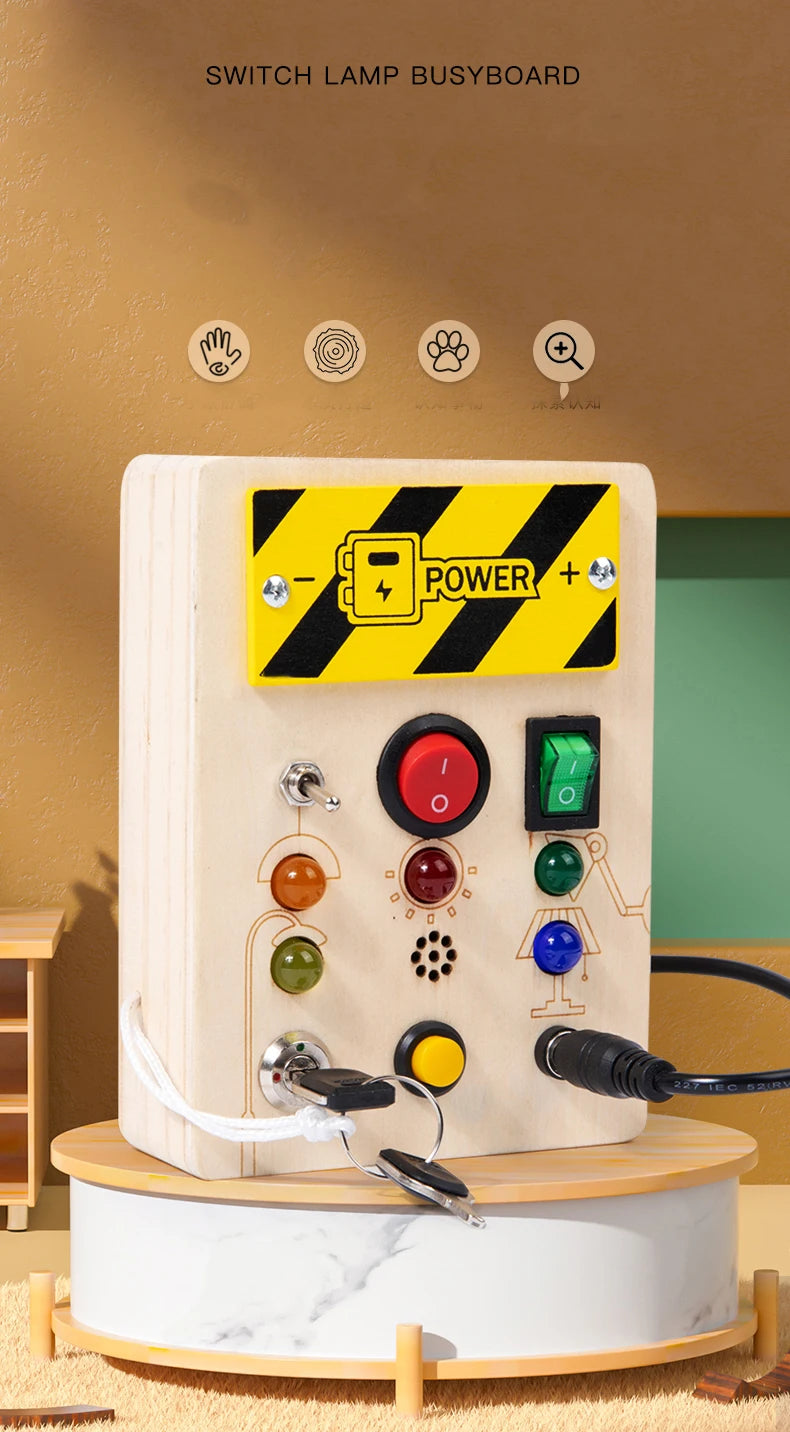 Baby Montessori Wooden Busy Board with LED Light Sensory Educational Activities Travel Toys for Toddlers 1-3Y Toggle Switch Toy